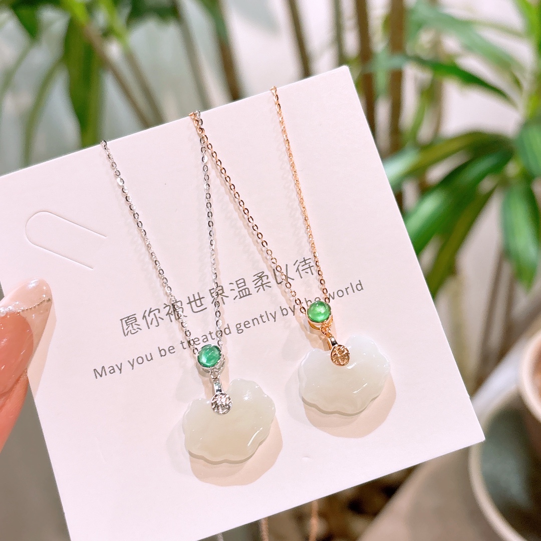925 Silver Hetian Jade Necklace Ultra Minimal Teacher's Day Silver