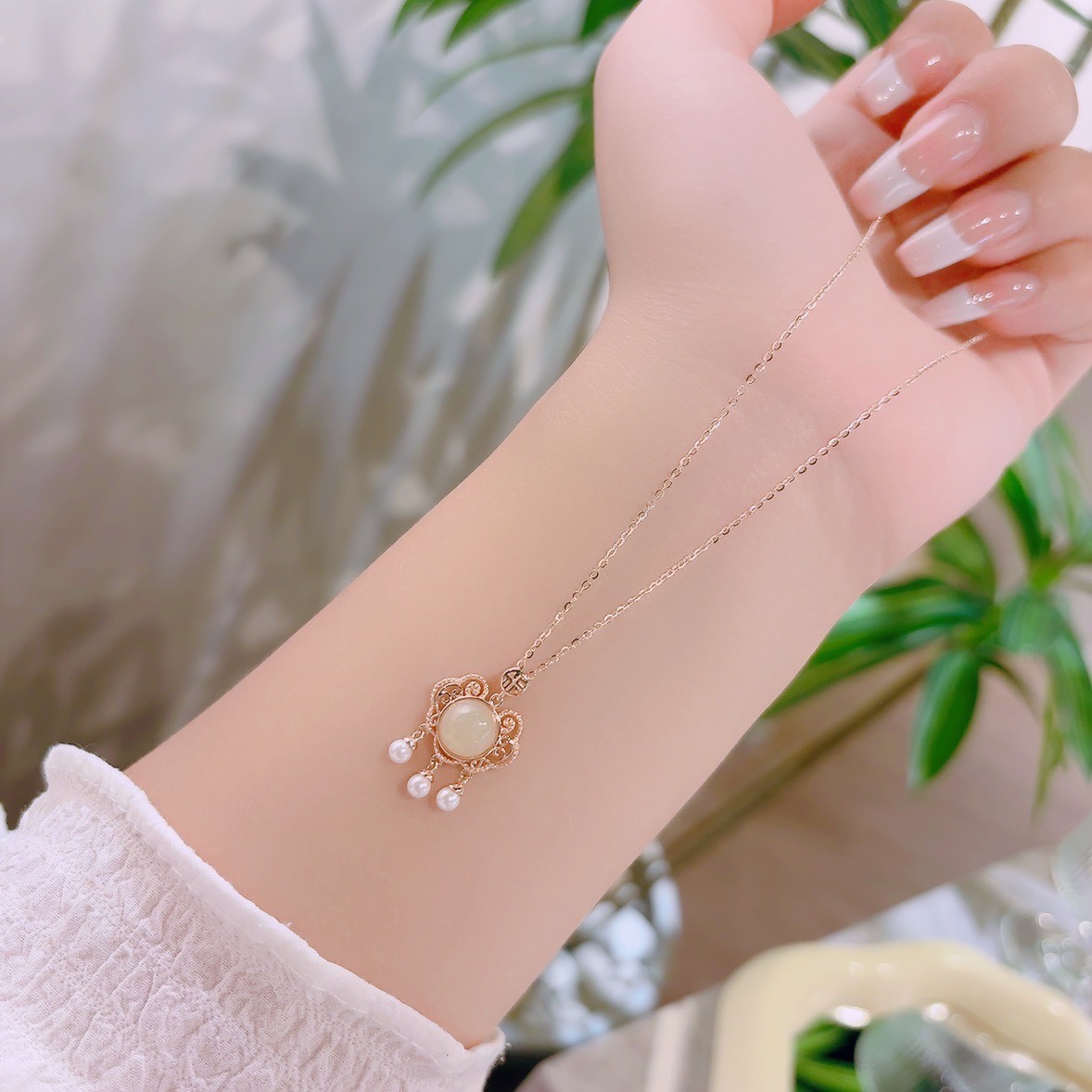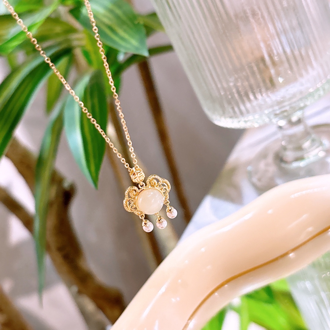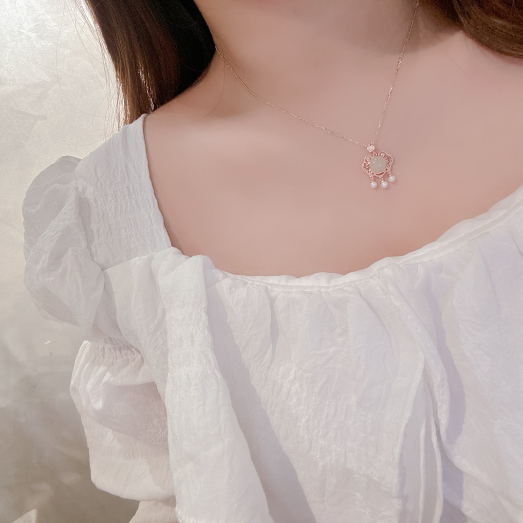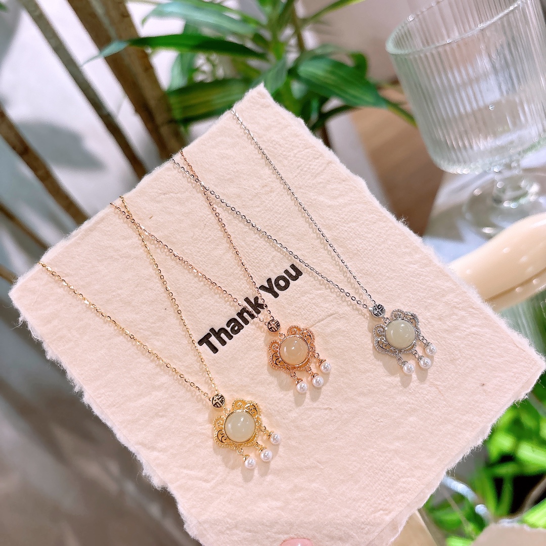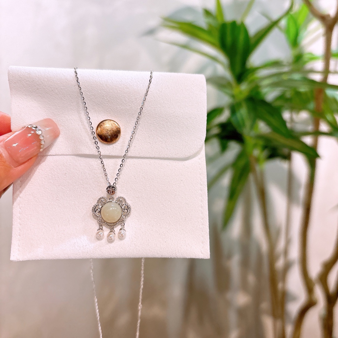 Fine Silver Hetian Jade Necklace Fashion Spring Festival Silver
