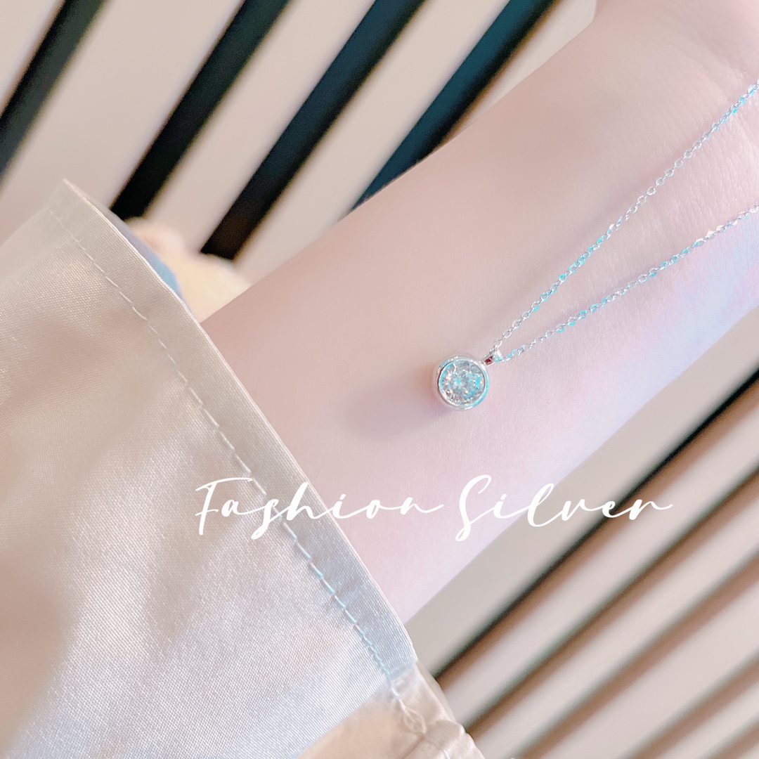 Solid Silver Moissanite Necklace Minimalist Travel Silver
