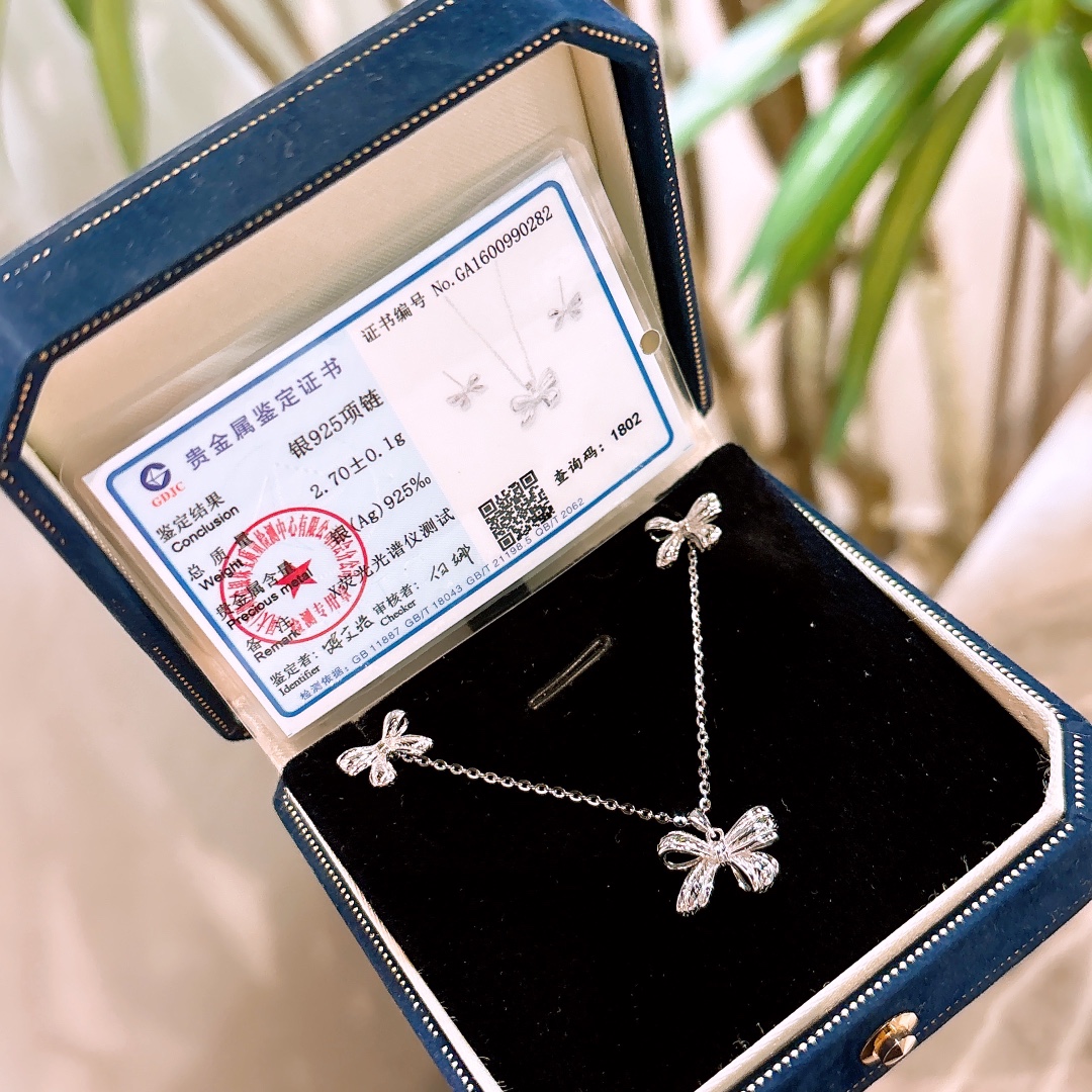 Hypoallergenic Silver Earrings & Necklace Set Ins Style Office Silver