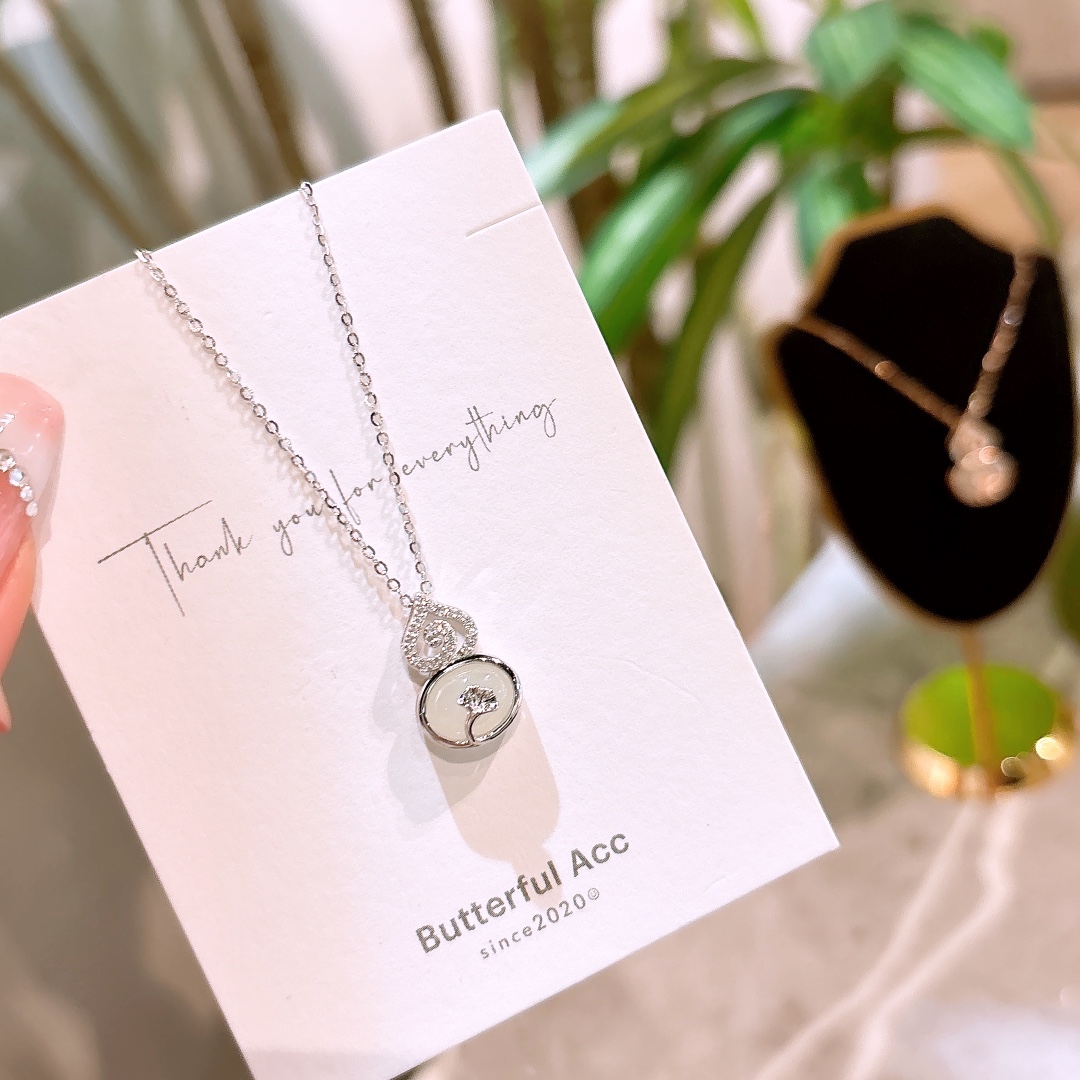 S925 Sterling Silver Hetian Jade Necklace French Self-love Gold