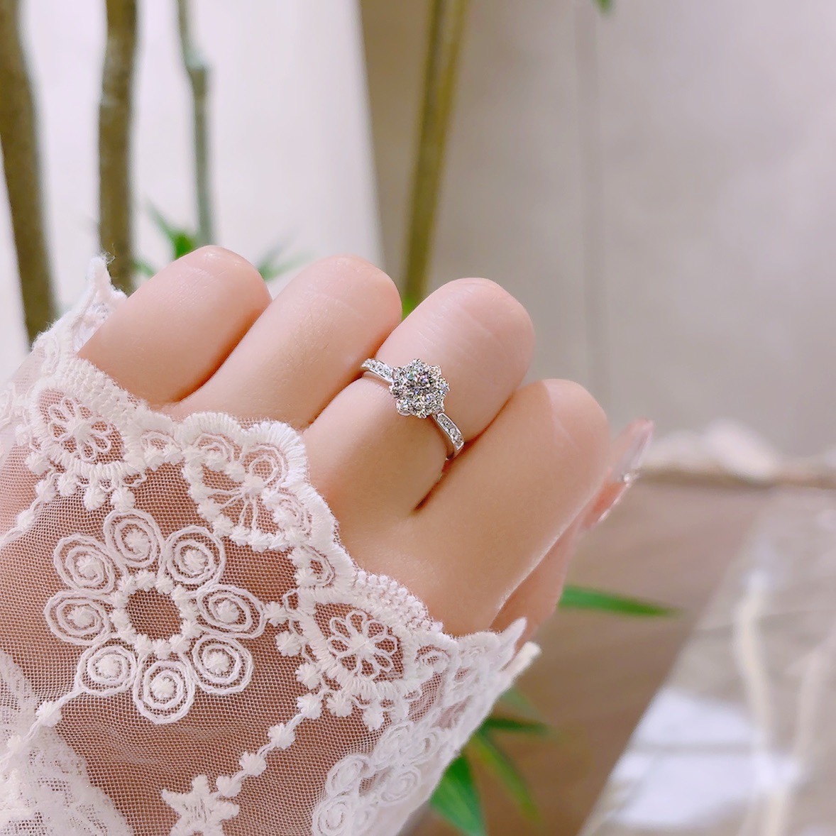 Fine Silver Moissanite Ring Ins Style Graduation Silver
