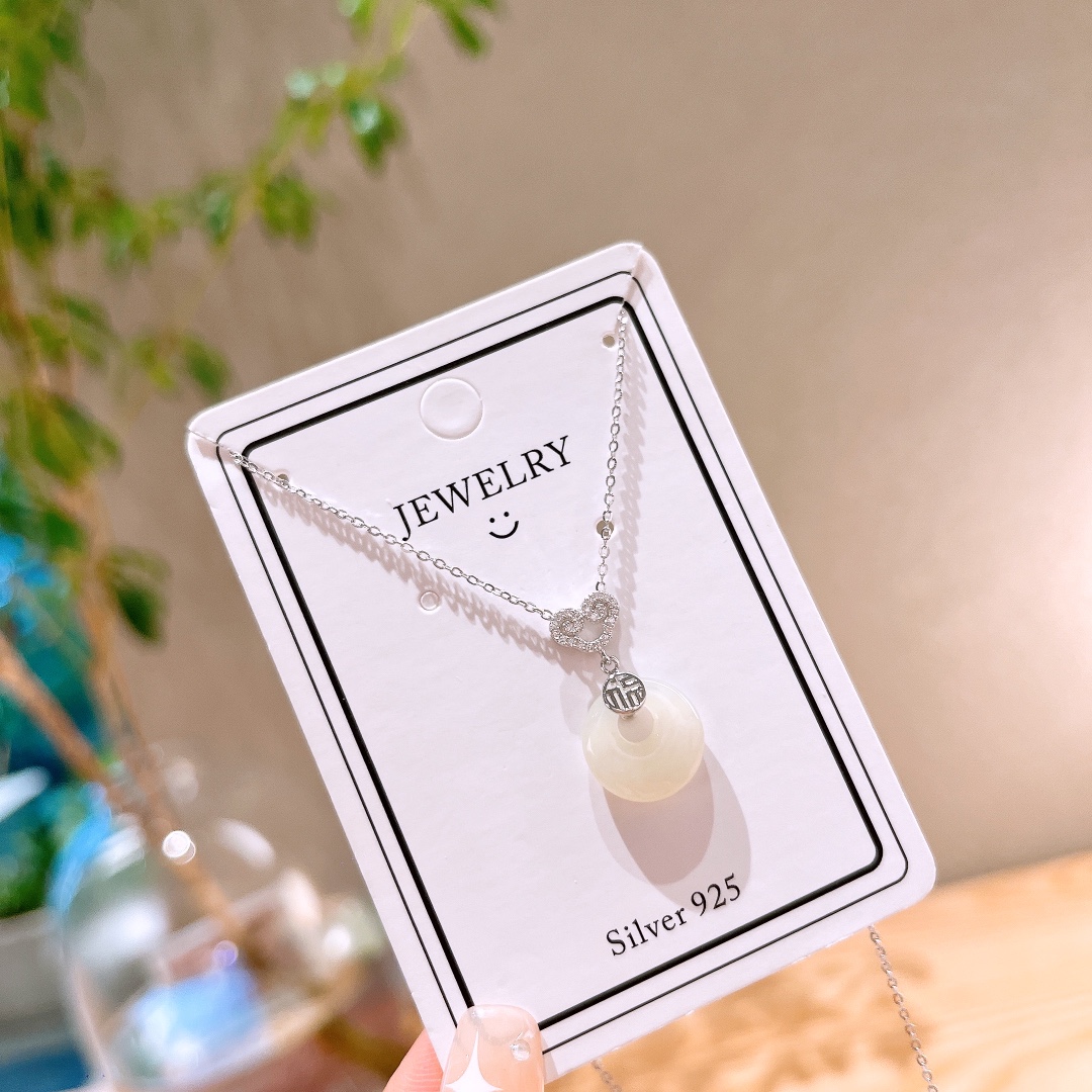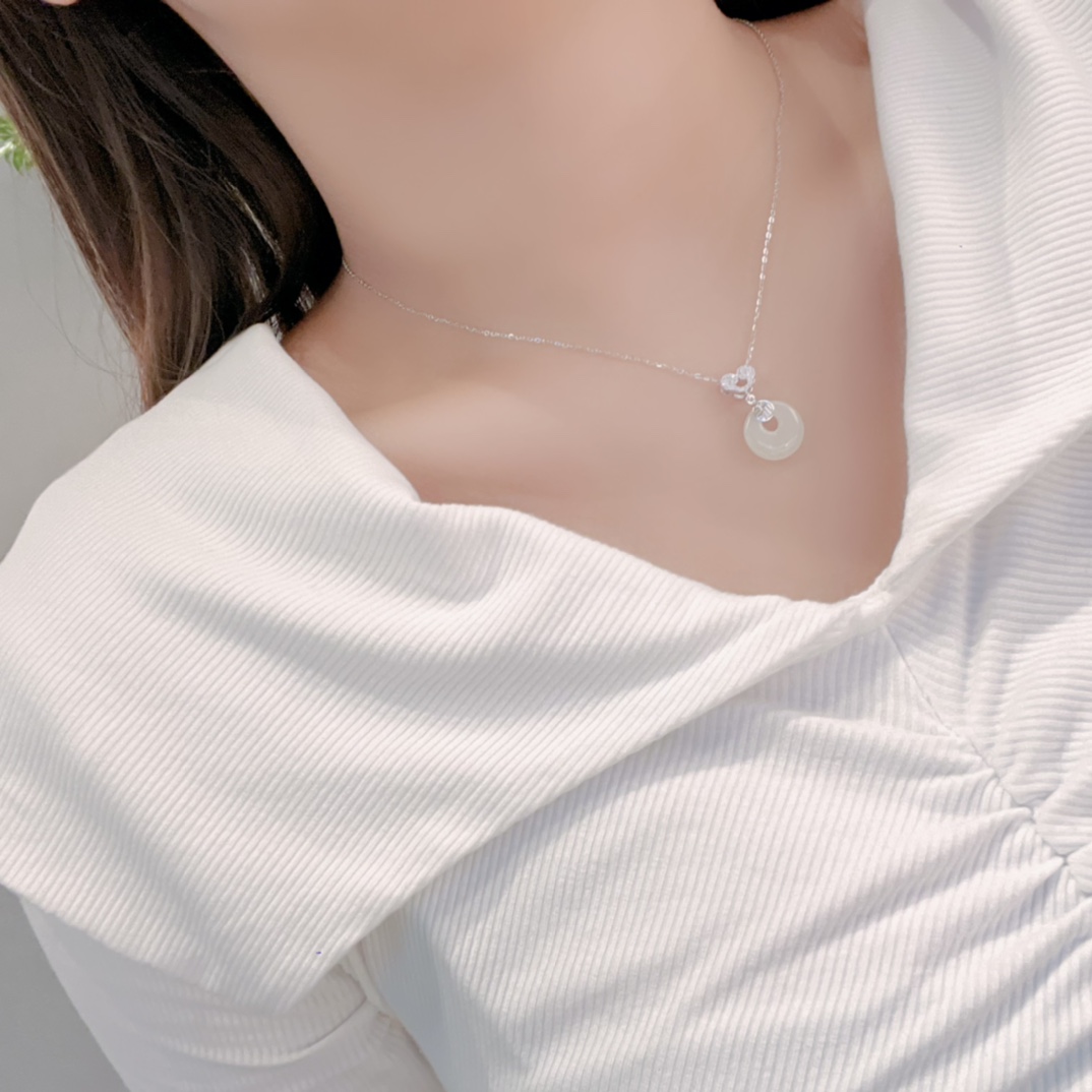 S925 Sterling Silver Hetian Jade Necklace Gentle Date Night Gold