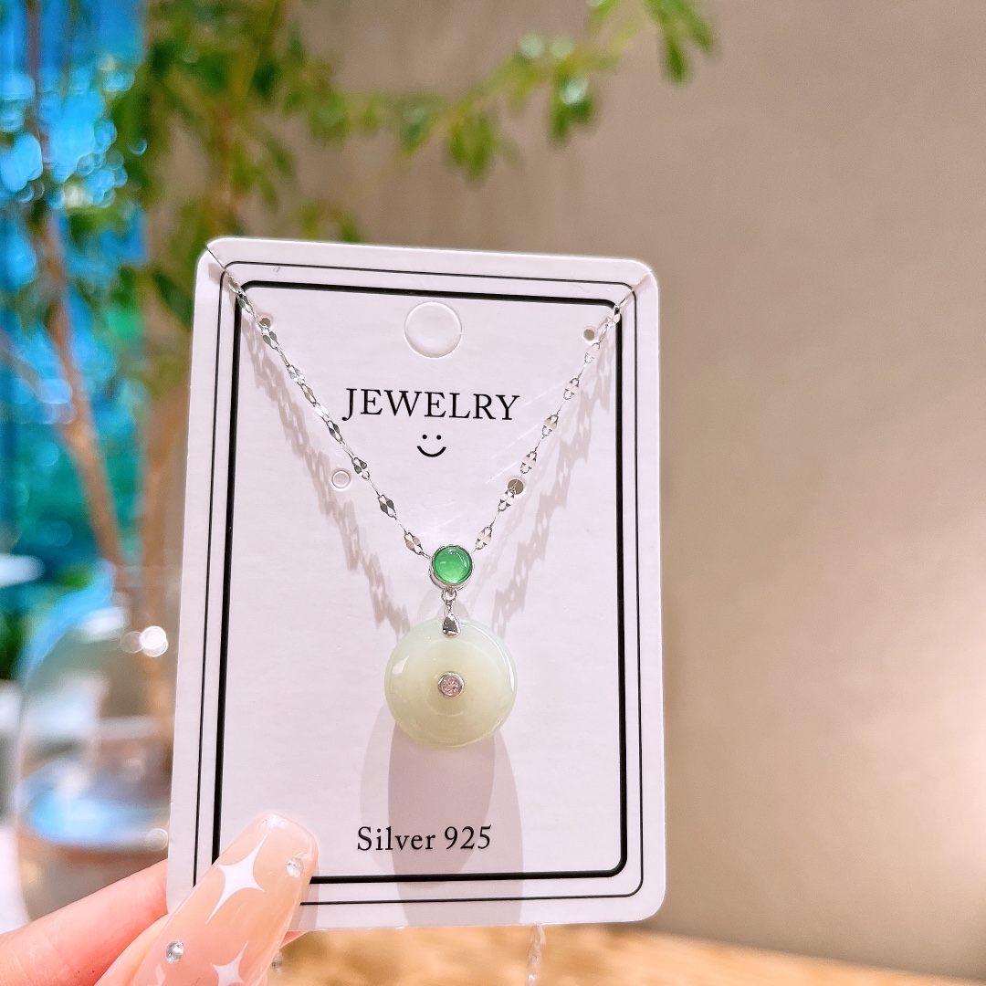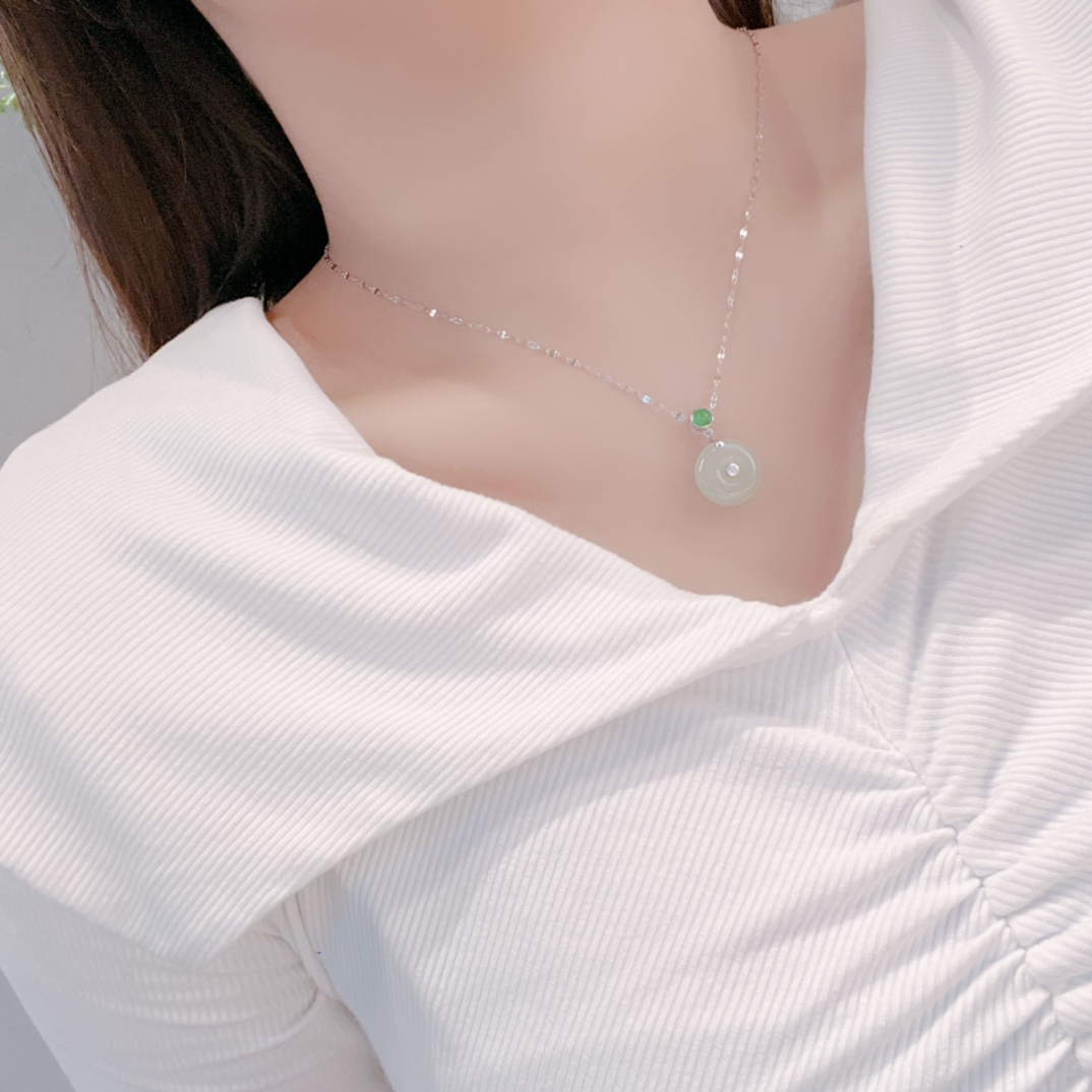 Hypoallergenic Silver Hetian Jade Necklace Ethereal Graduation Gold