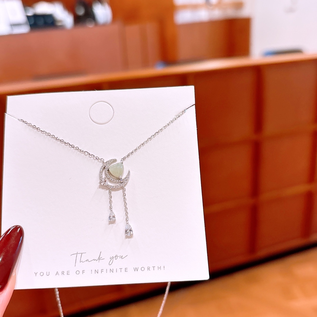 Hypoallergenic Silver Hetian Jade Necklace Soft Christmas Silver