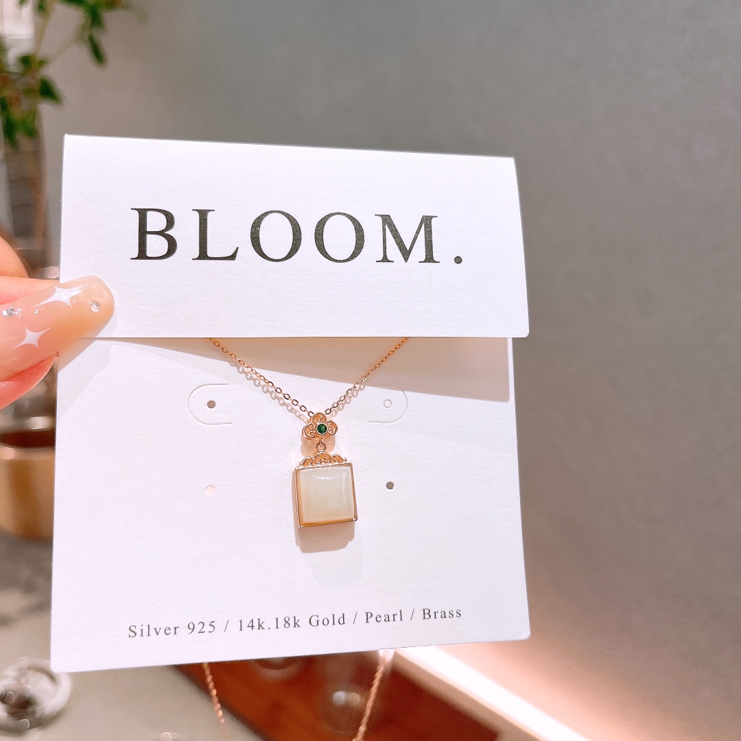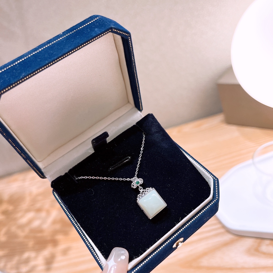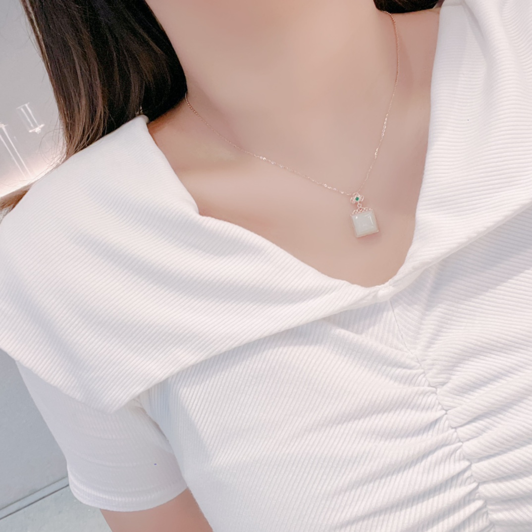 Fine Silver Hetian Jade Necklace Minimalist New Year Gold