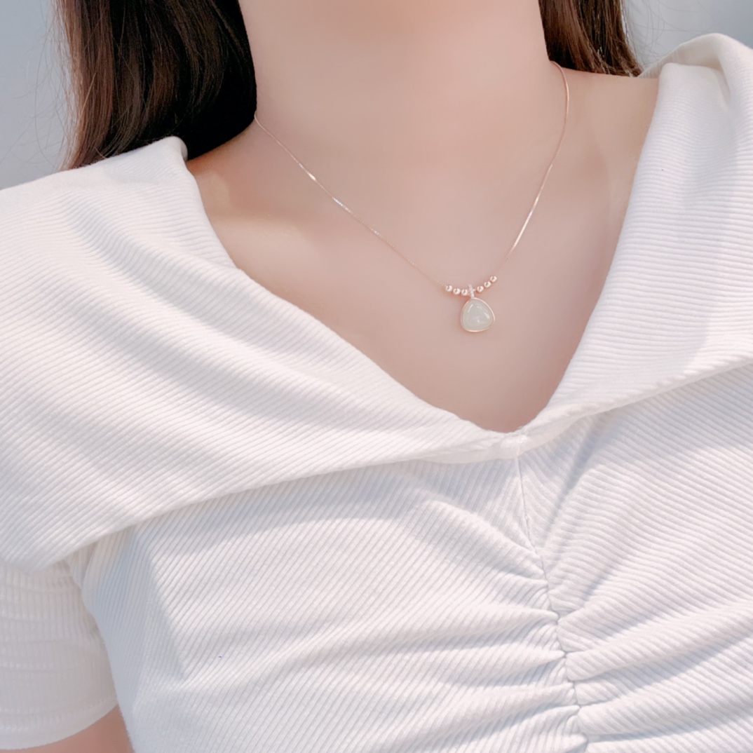 High Polish Silver Hetian Jade Necklace Ethereal Birthday Silver