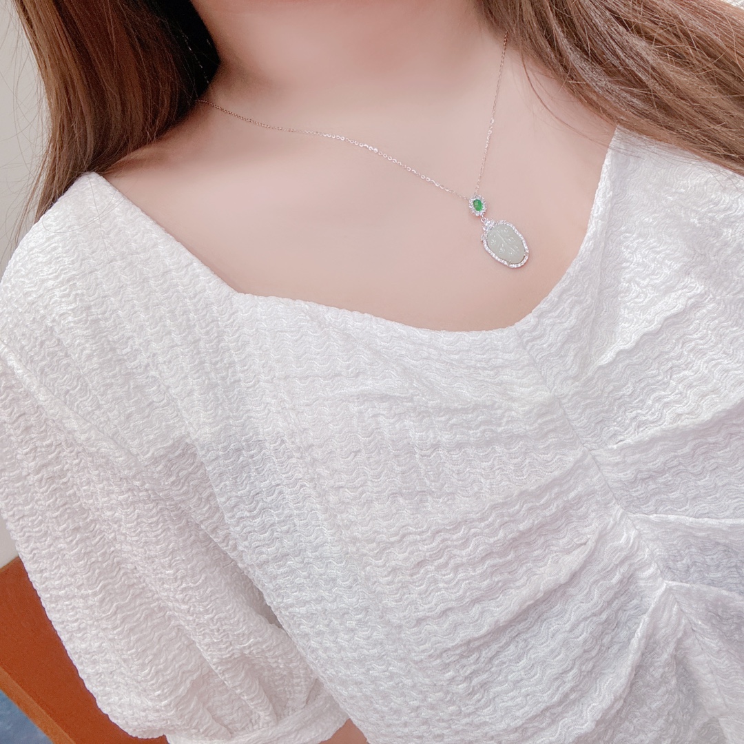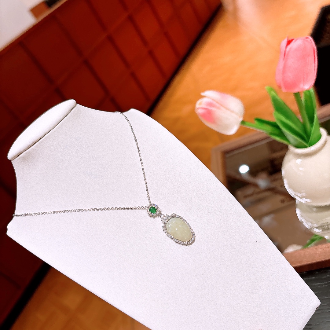 Solid Silver Hetian Jade Necklace Fresh Banquet Silver