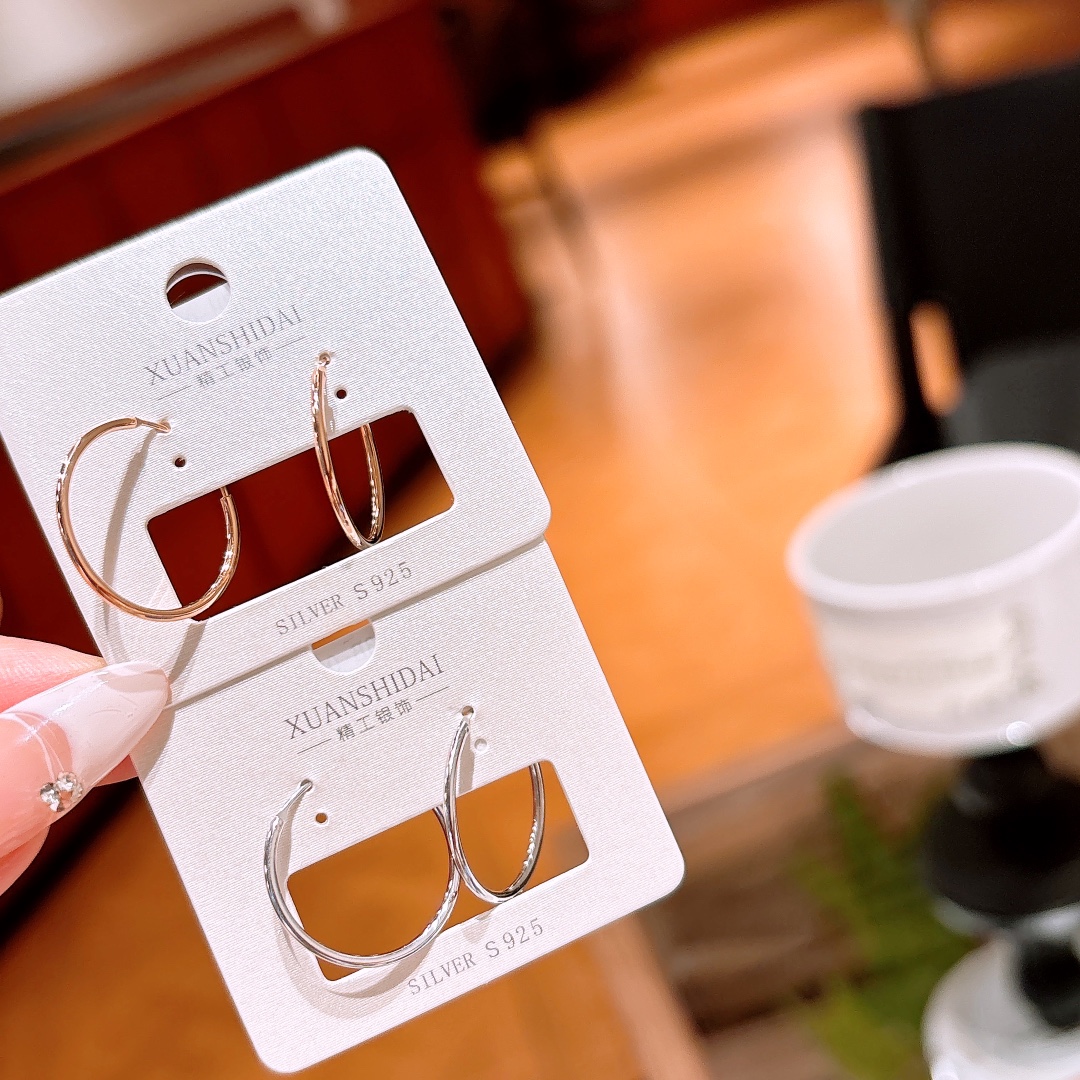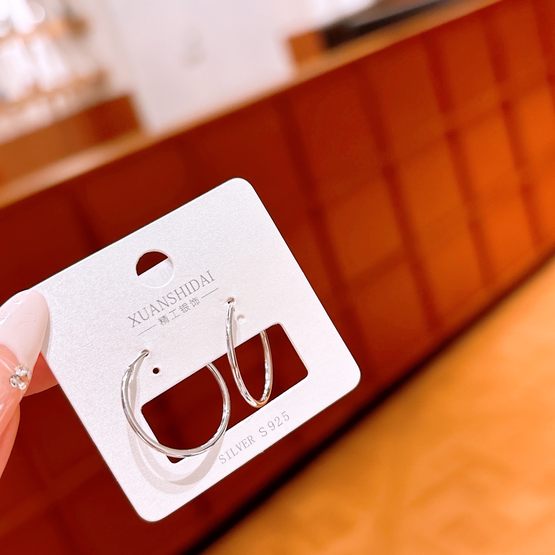 Hypoallergenic Silver Hoop Earrings Korean Style Workplace Silver