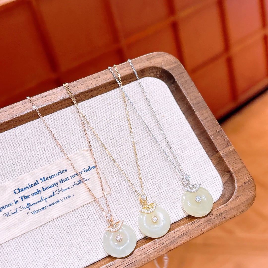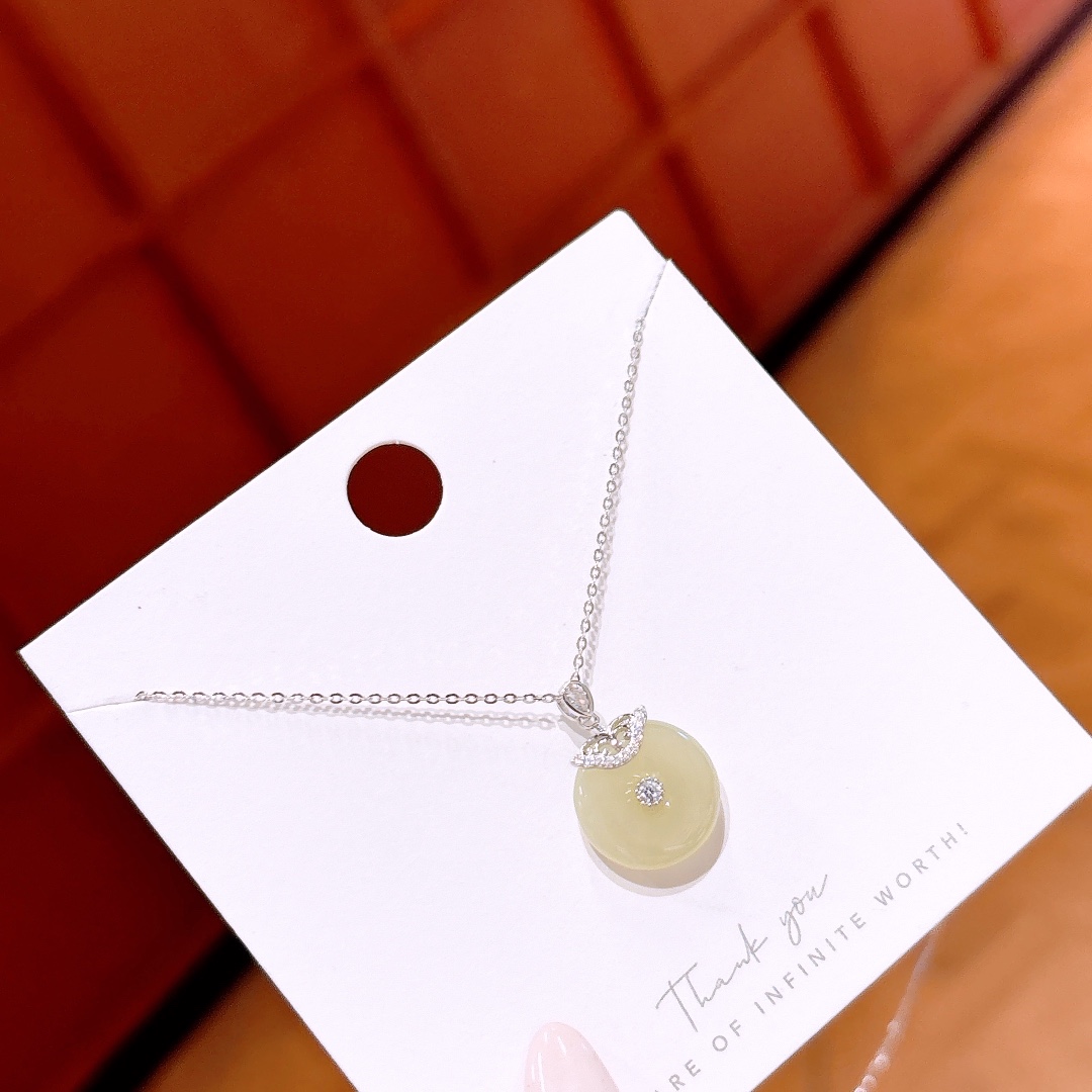 S925 Sterling Silver Hetian Jade Necklace Intellectual Mother's Day