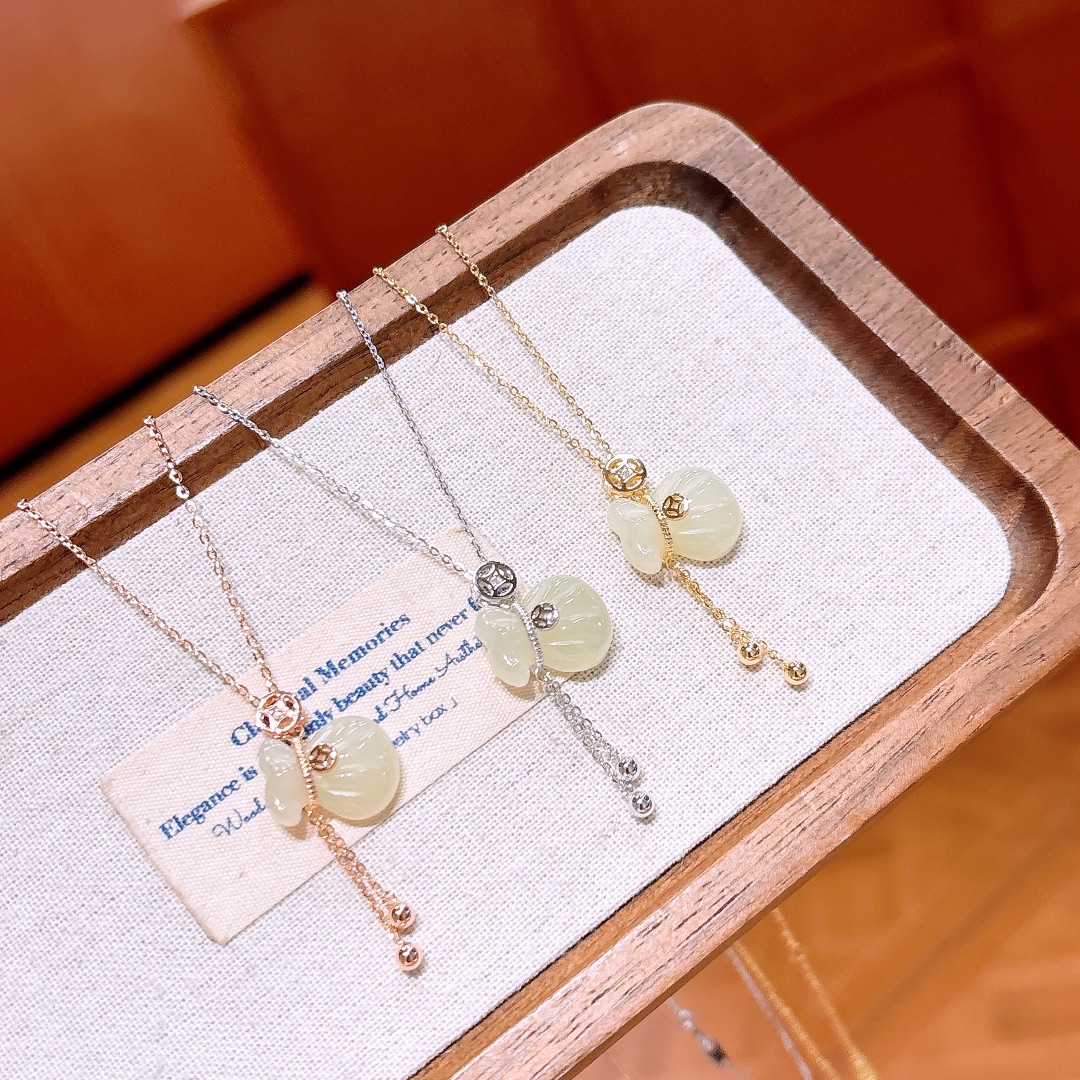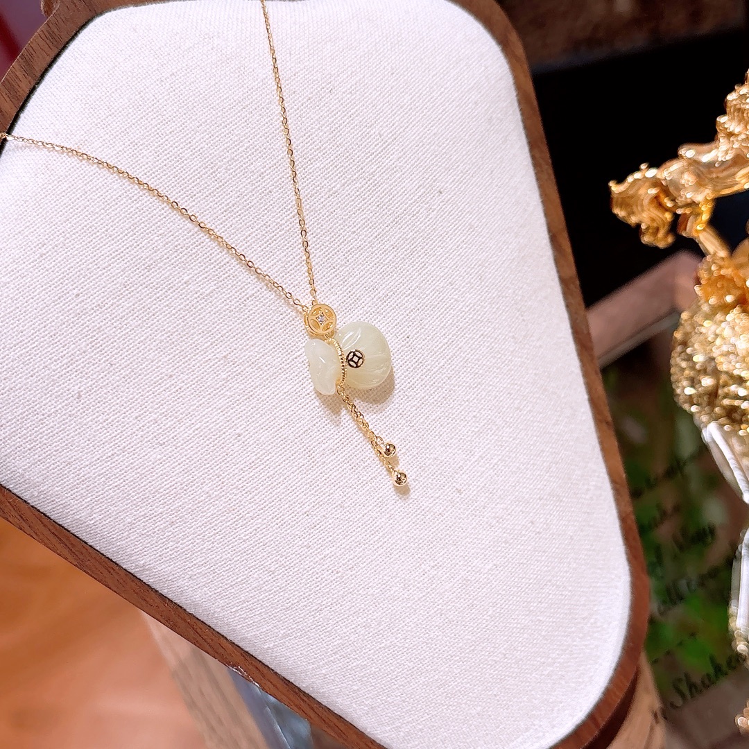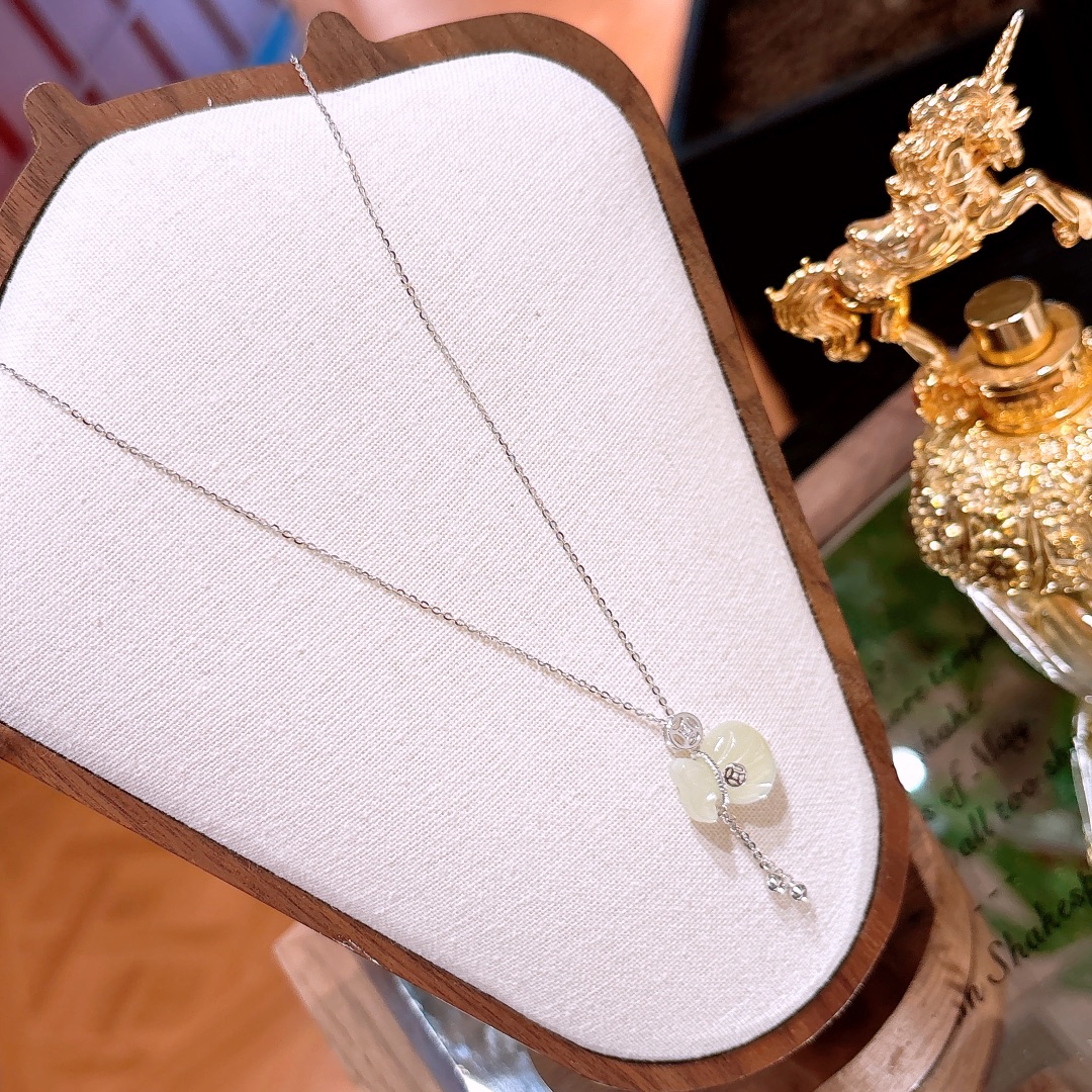 Fine Silver Hetian Jade Necklace Ethereal Workplace Gold