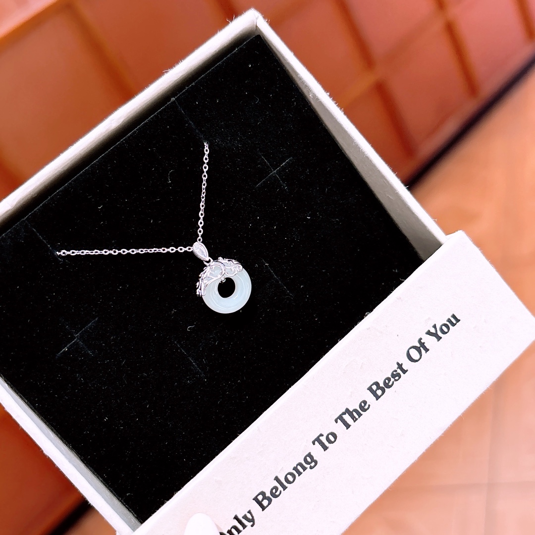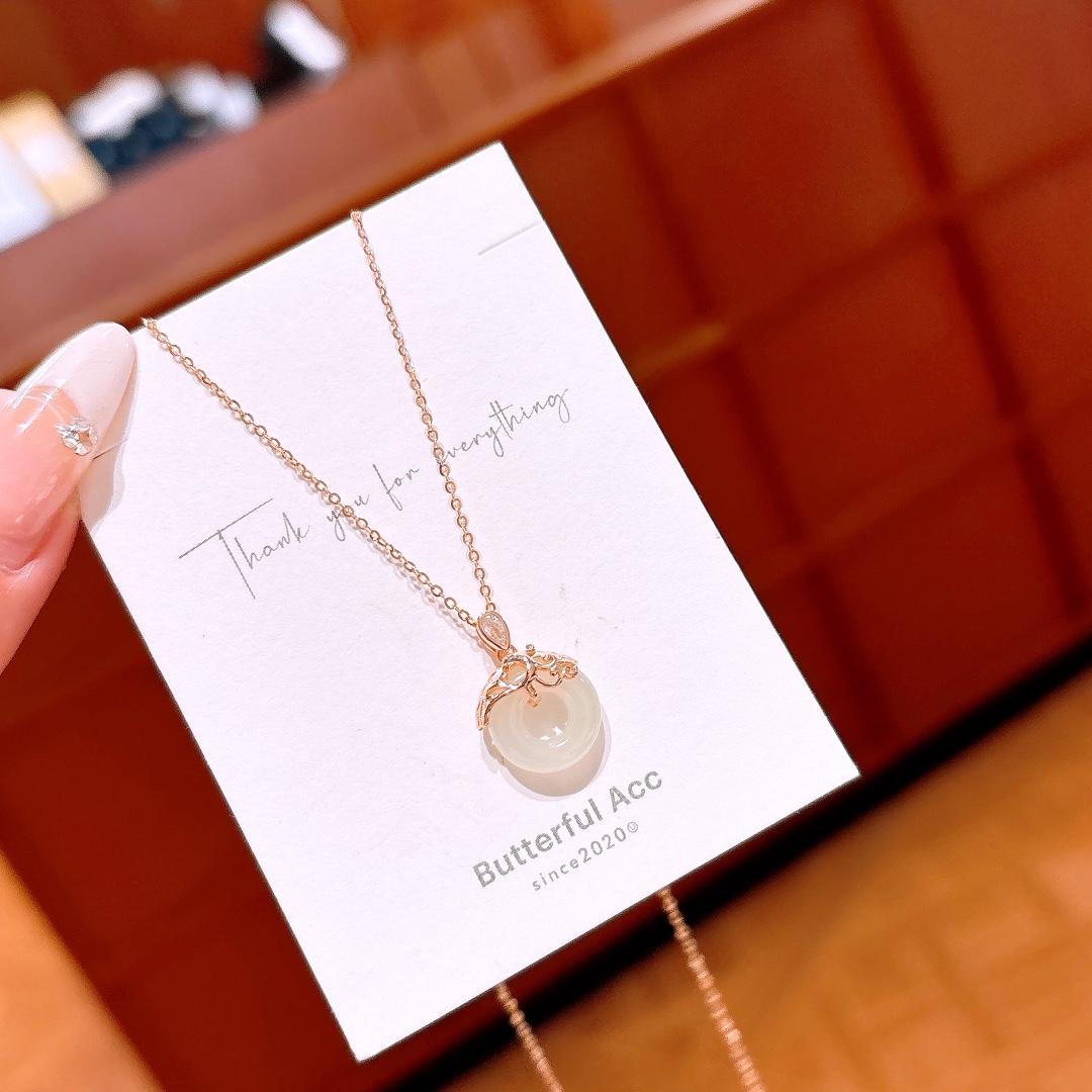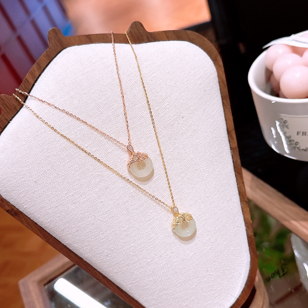 S925 Sterling Silver Hetian Jade Necklace Girly Graduation Gold